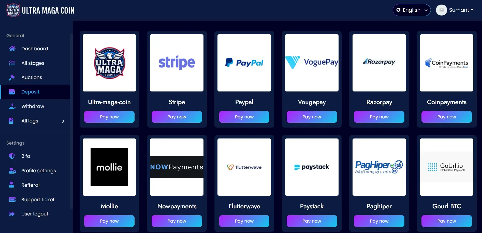 coinpayment and many more , you need to setup API credential