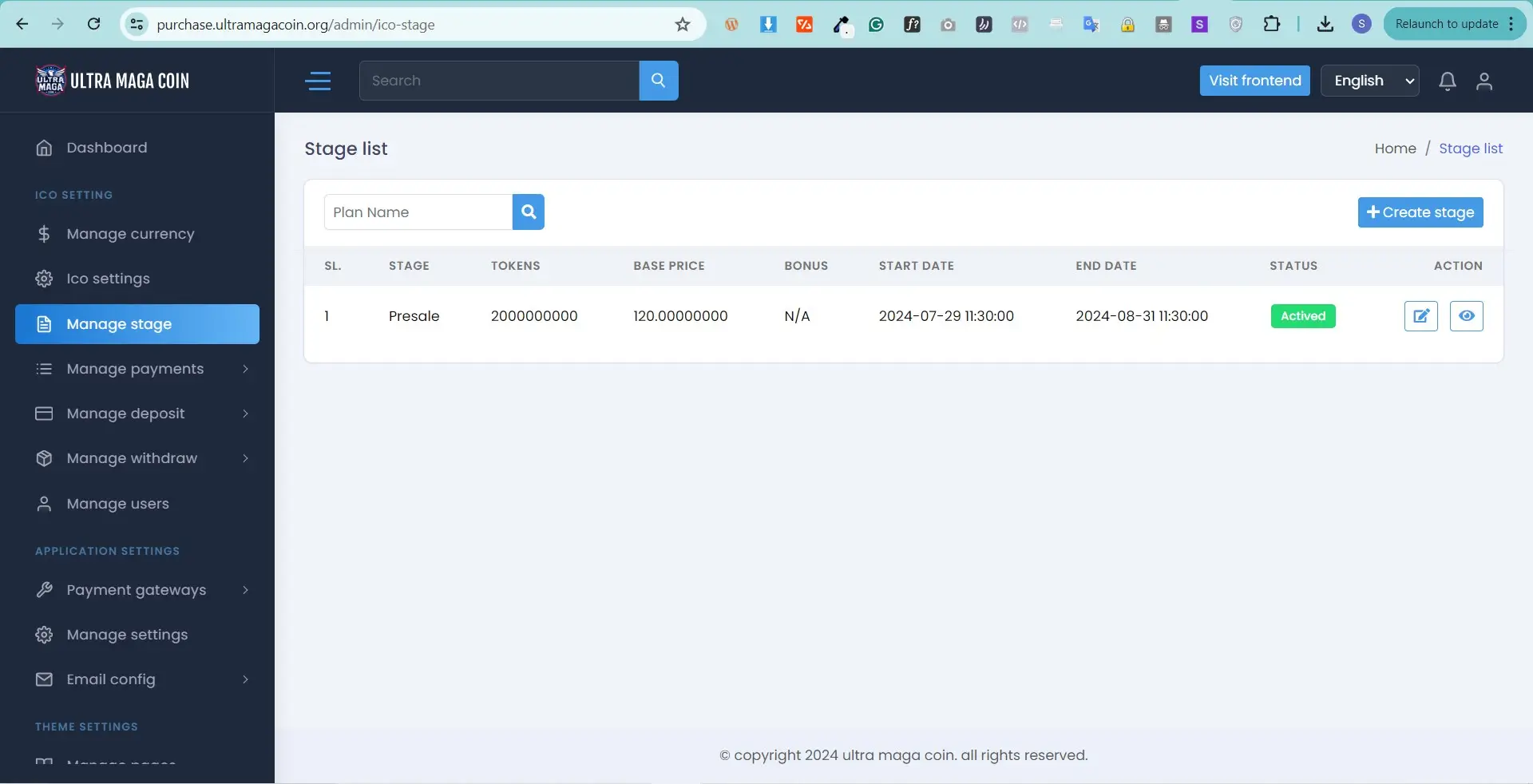 This is the main function for this system , here you can create a stage for token sale.