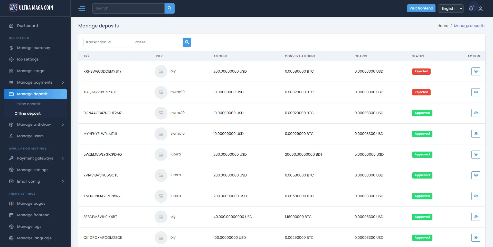Offline / Manual deposit – You can approve , see and reject payment deposit