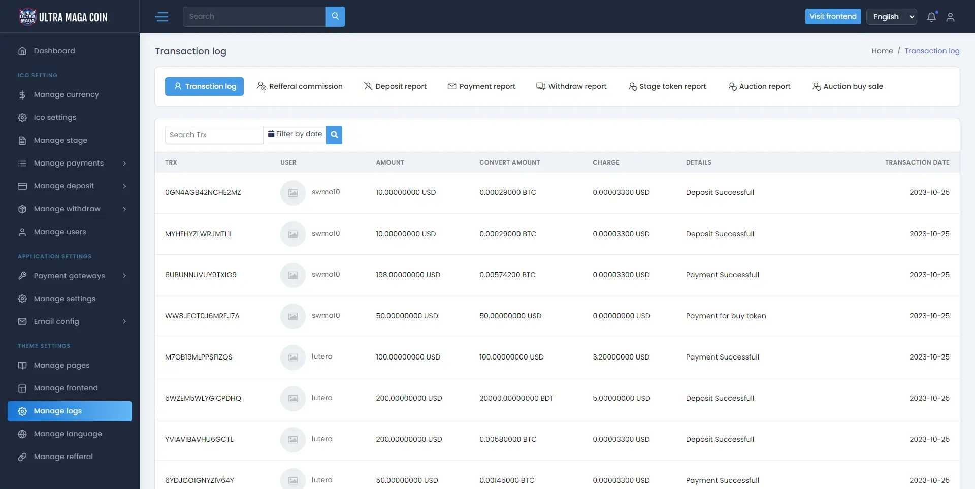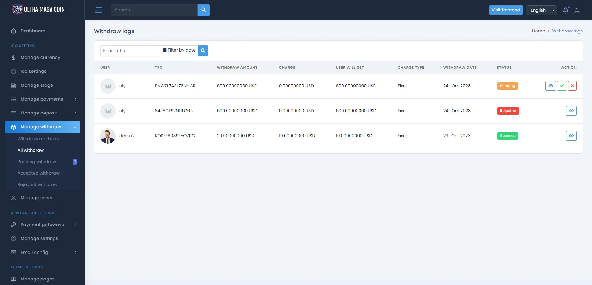 You can set withdraw gateway , charge , minimum /maximum amount , gateway name also you can approve / reject withdraw request.